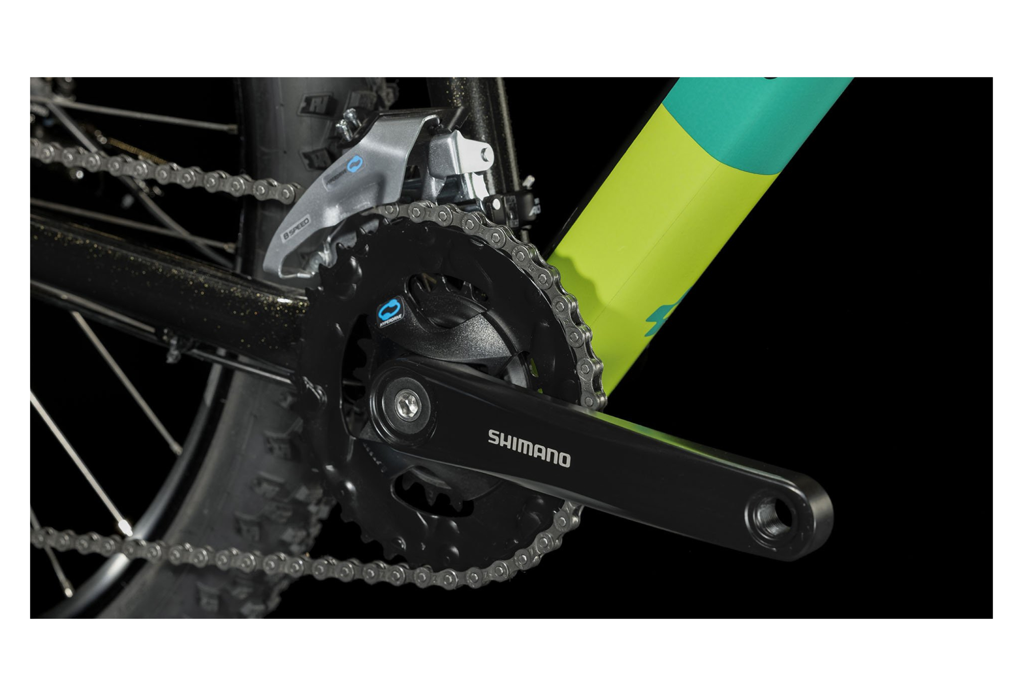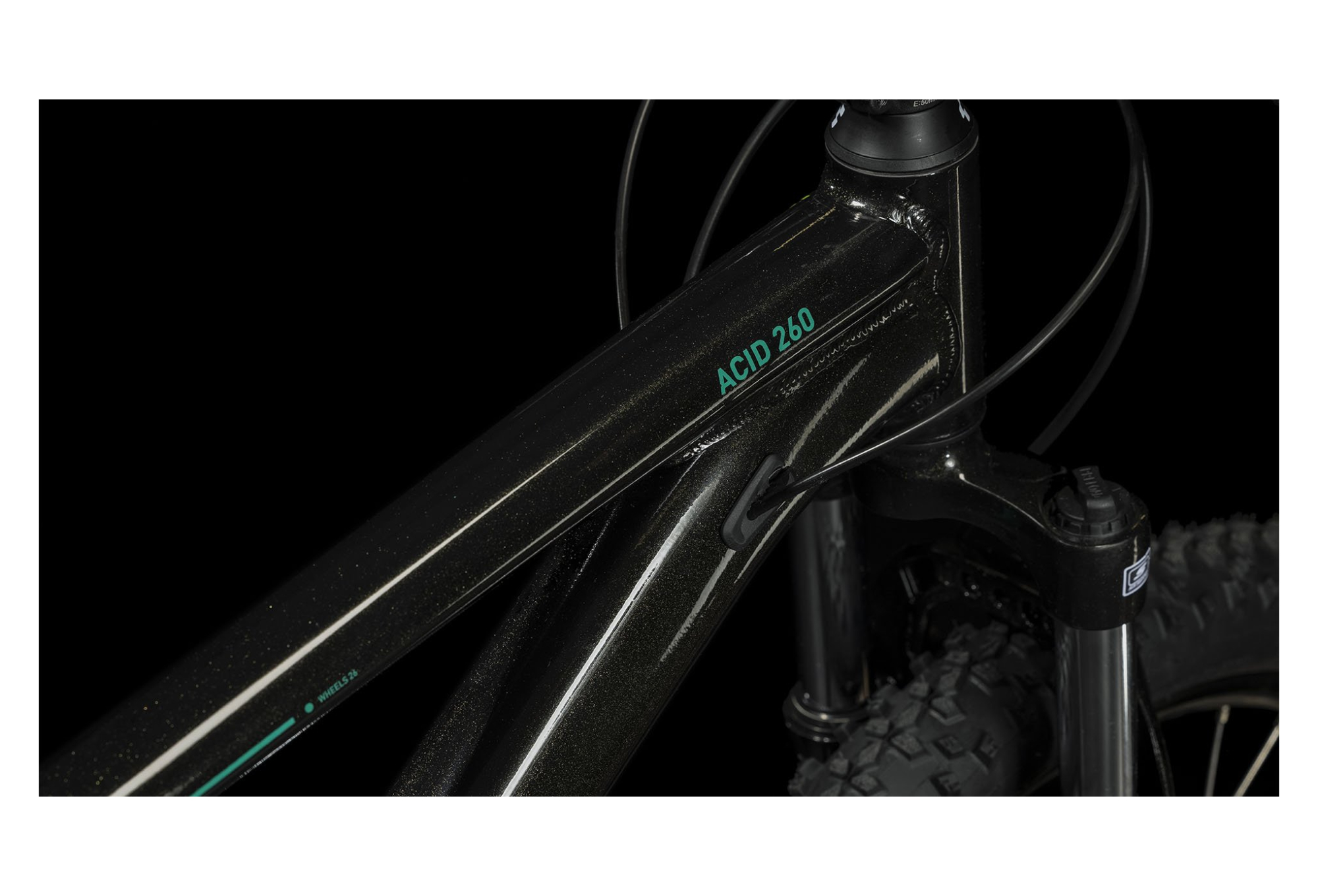 Authentique VTT pour les jeunes cyclistes, le Cube Acid 260 Disc dispose de tout ce dont un jeune passionné pourrait avoir envie. Avec son élégant cadre en aluminium et sa fourche suspendue Suntour, il a été conçu pour s’attaquer à tous les types de chemins. Sa transmission Shimano 2×8 vitesses offre suffisamment de profondeur pour vous lancer sur n’importe quel type d’itinéraire, tandis que ses freins à disque Clarks offrent la puissance nécessaire pour contrôler votre vitesse (et vous arrêter en toute sécurité), quelle que soit la météo. Avec ses pneus de 2,25 pouces larges et adhérents et ses composants de finition Cube, vous avez là un package tout-terrain complet pour jeune cycliste.