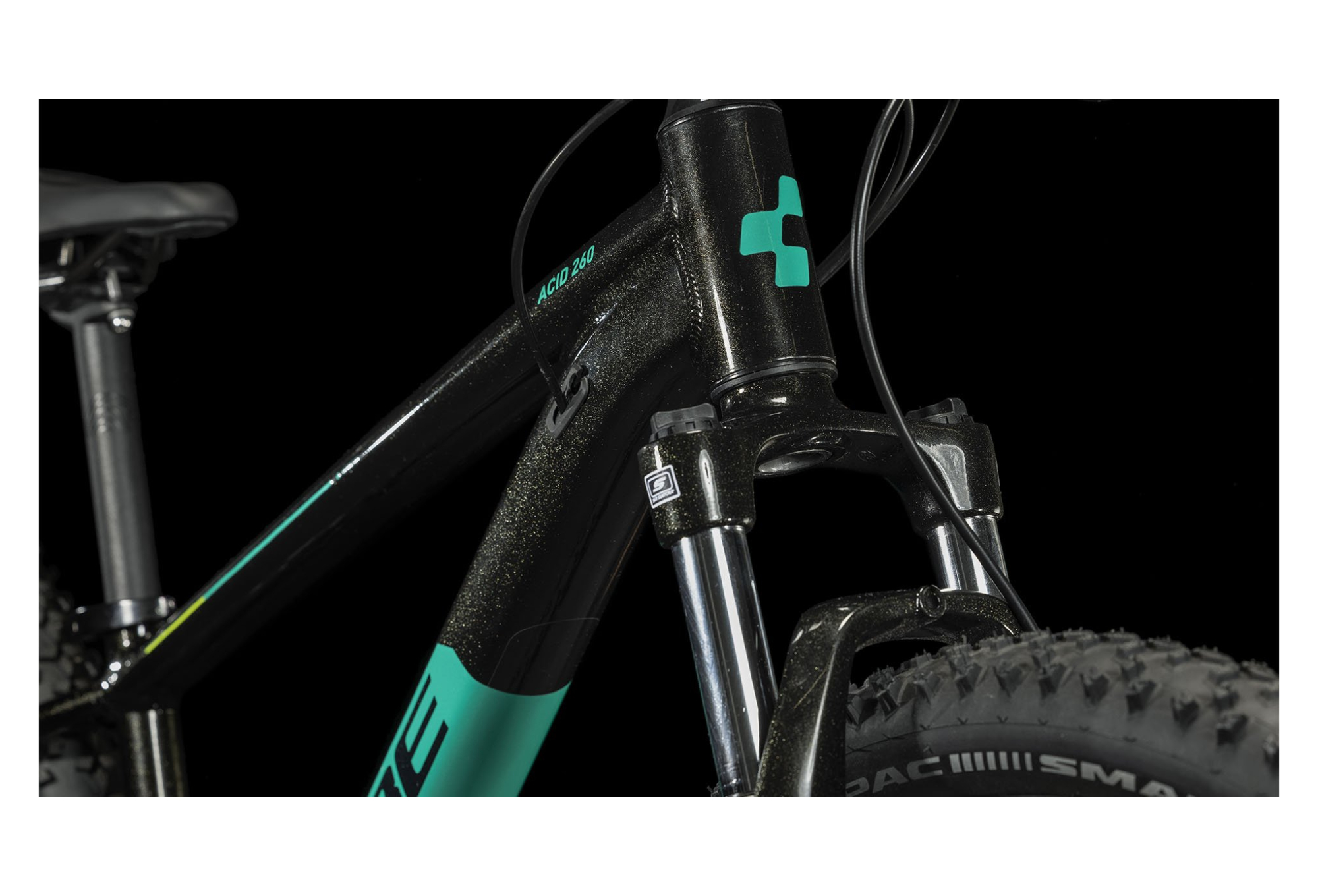 Pas d’excuses, pas de compromis : le cadre du Cube Acid 260 Disc a fait l’objet de la même attention au détail que les VTT hardtail pour adultes de la marque. Vous trouverez donc un boîtier de pédalier fileté et un passage interne de câbles, un support de fixation pour disque de type Flat Mount intégrant naturellement le support de fixation pour béquille, ainsi que des points de fixation intégrés pour porte-bagages et garde-boue Acid. Ses jonctions de tube de direction et de tige de selle ont bénéficié de la technique Smooth Welding, et sont aussi robustes qu’élégantes. Enfin, sa géométrie a été pensée pour être à la fois ludique et stable.